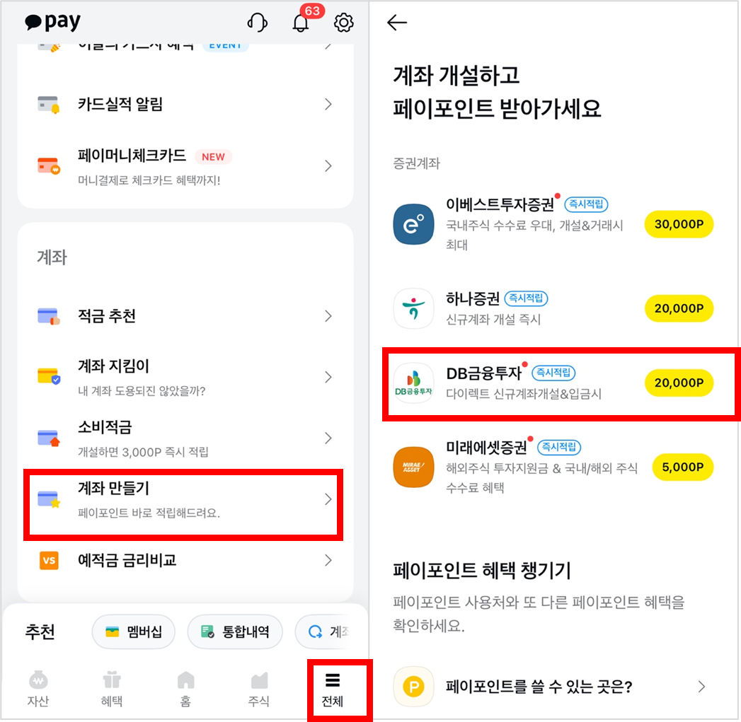 1. 신규 계좌개설 → 카카오페이포인트 2만원