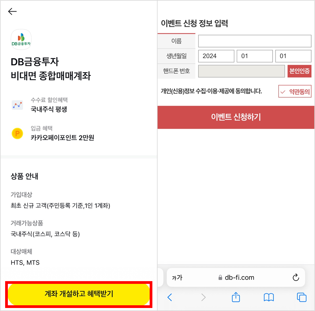 DB금융투자 이벤트 신청 및 계좌개설 방법